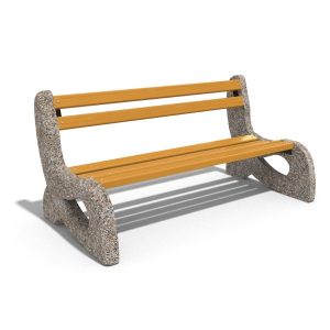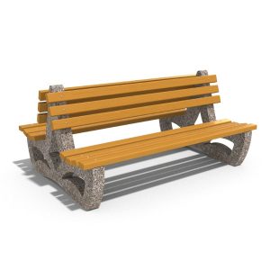 Material: cadru din beton armat, sezut si spatar din rigle din lemn de molid.