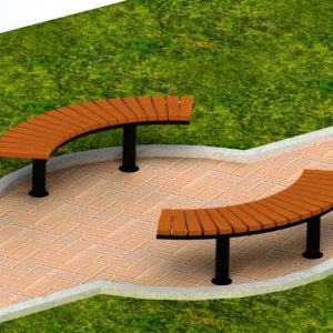Material: cadru din beton armat, sezut si spatar din rigle din lemn de molid