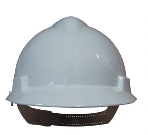 Casca de protectie din polietilena de inalta densitate, bordura cu sant, fante laterale de montare a accesoriilor, orificii de aerisire.