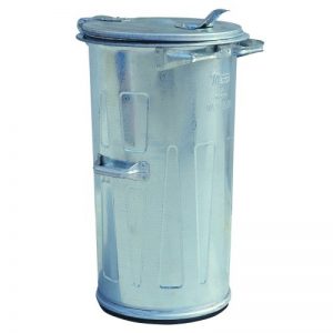 Pubela metalica zincata prin incandescenta prevazuta cu capac rabatabil avand capacitatea de 90 litri.